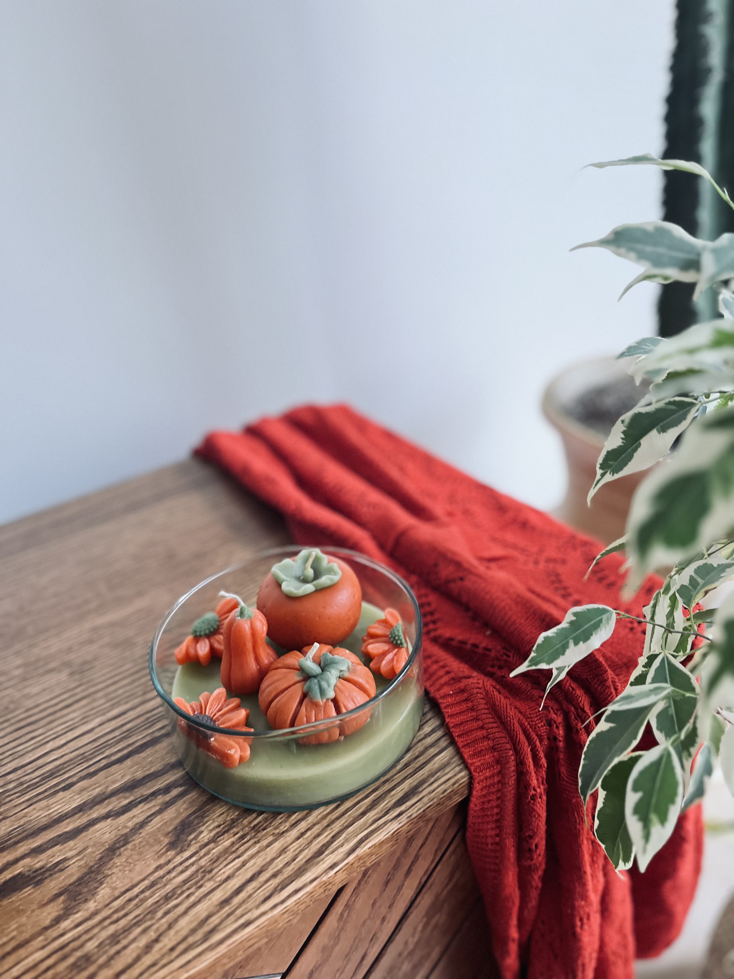 جار شمع پاییزی خرمالو و کدو با قطر ۱۵ سانتی متر