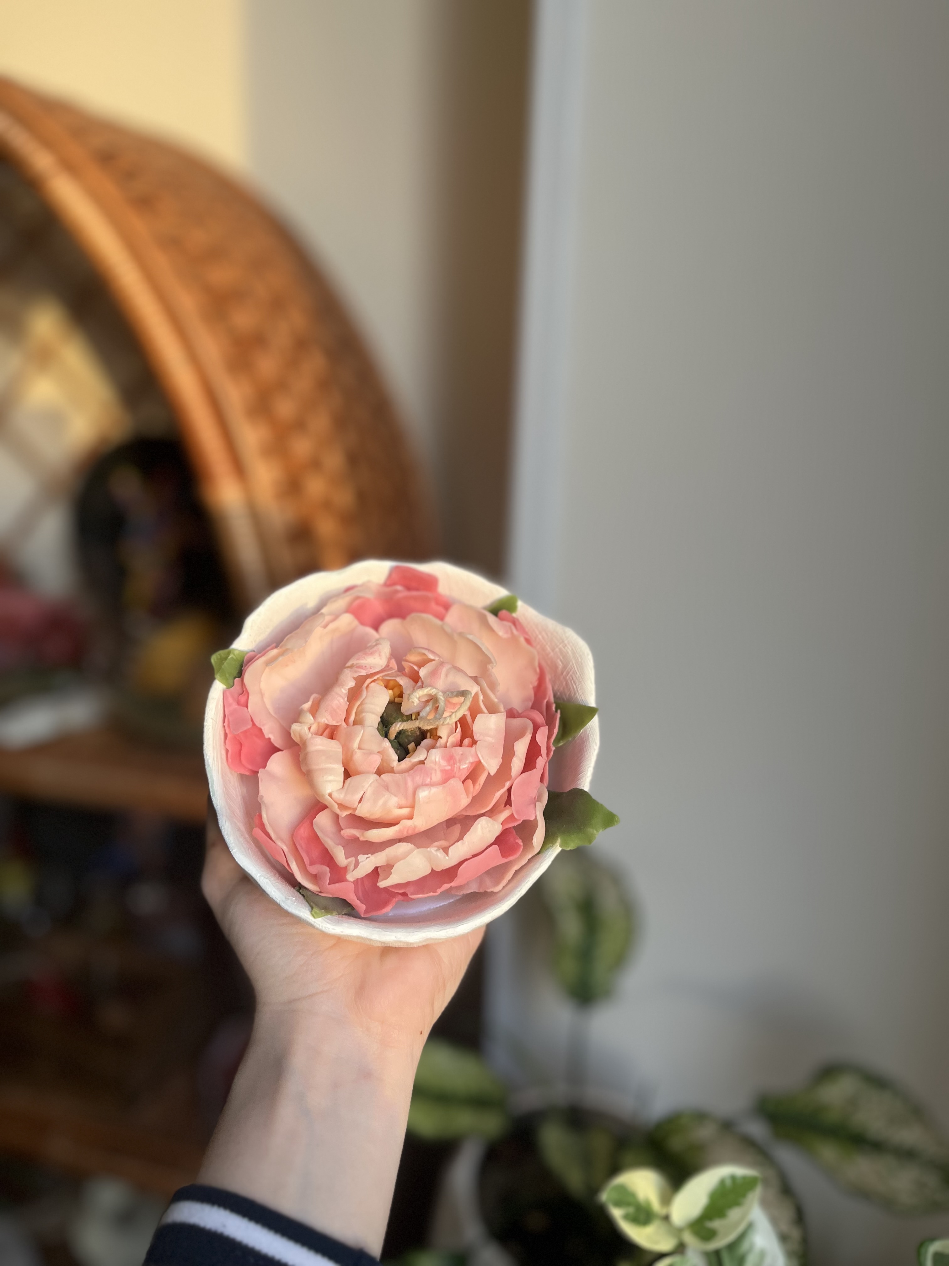شمع گل دستساز کاسه ای از پارافین ارگانیک و غیر شیمیایی درست شده است و کاملا دستساز و بدون قالب میباشد. مناسب هدیه تولد و ولنتاین